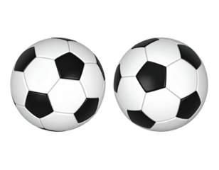 3D Plastic Style Soccer Balls In Red And Gold Against A Transparent Background