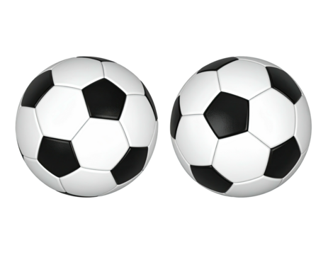 Digitally created illustration of eight black and white soccer balls at various angles, isolated