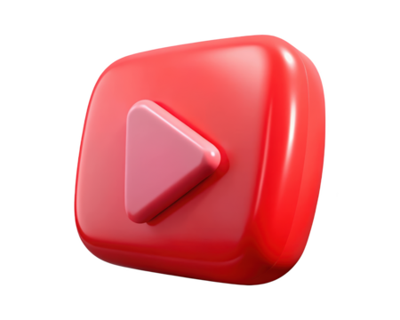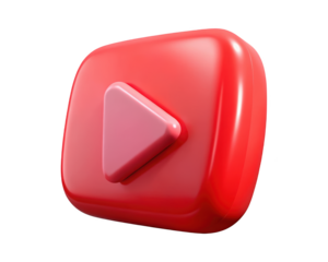 Red play button icon glossy render social media design element 3d illustration isolated on transparent background