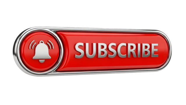Red subscribe button with a cursor clicking it, isolated on transparent background