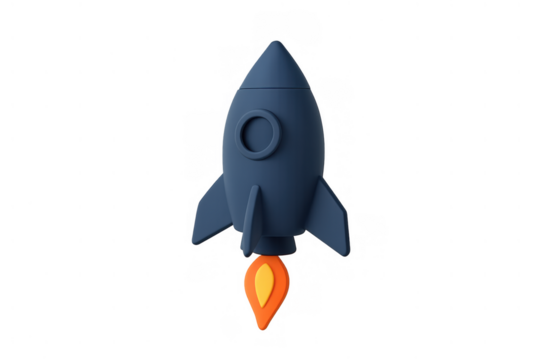 Rocket producing fire, taking off for a new business launch, startup project, or technological innovation journey. Transparent background