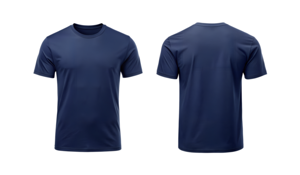 Navy Blue T Shirt Mockup Front and Back View on Transparent Background