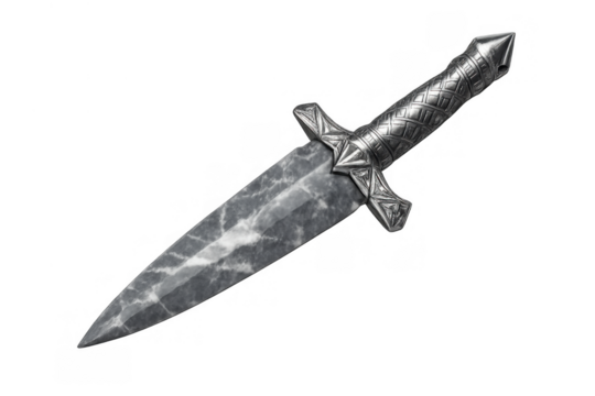 Fantasy dagger with ornate hilt and marbled stone blade for games, magic, or historical themes