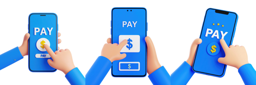 Hands holding a modern smartphone with a blank white screen isolated on transparent background