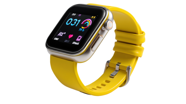 Tech Time: A cutting-edge smartwatch features a vibrant screen and comfortable yellow strap, representing the fusion of technology and style for the modern individual.