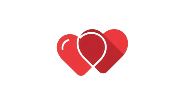 Two interconnected red heart icons with a modern flat design style, symbolizing love, connection, and relationships.