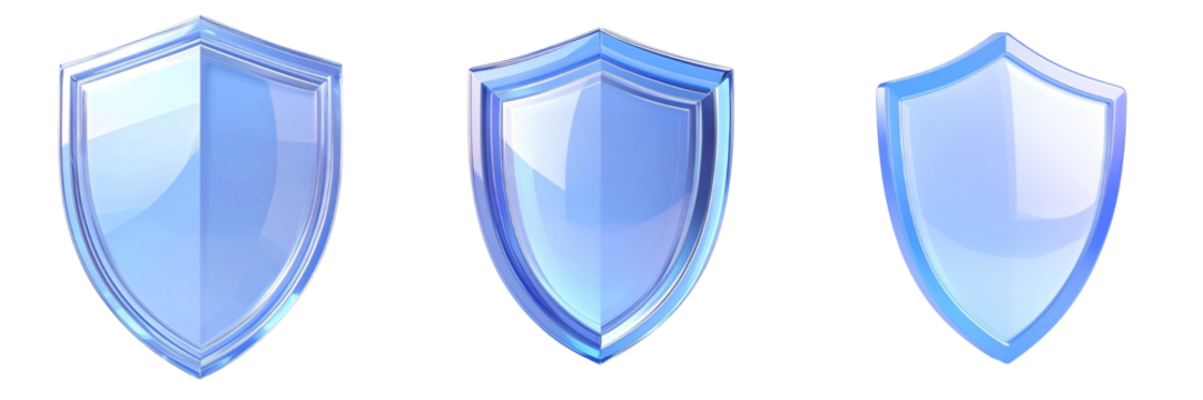 Three Blue Shields With Transparent Background Displaying Protective Security and Safety Concepts