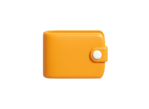 A glowing golden bitcoin symbol prominently displayed on the cover of a brown leather wallet isolated on transparent background