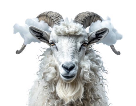 Abstract crystal egg with reflection of sky and clouds isolated on transparent background. White crystal ball watercolor isolated on white background.