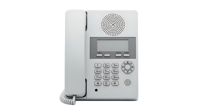 White Wall-Mounted Landline Telephone with Digital Display and Speakerphone