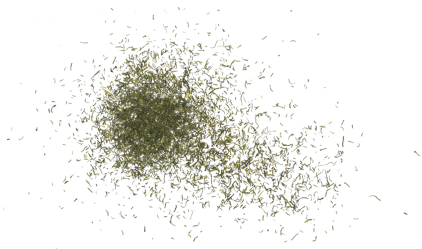 Close up of a fresh bunch of green dill with stems isolated on a png transparent background in a studio shot