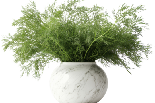 Fresh green dill plant in marble vase against black background natural food kitchen greenery herbs