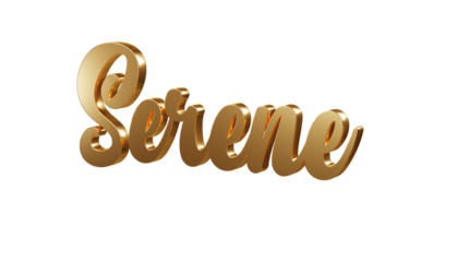 Luxury 3D gold text "Serene" on transparent background. Three dimensional Realistic script letters for logotype, symbol, signage, message etc.