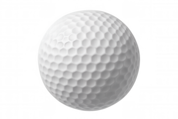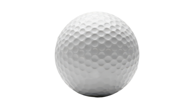 White dimpled golf ball floating, representing sport, success, play, and aiming for goals on a transparent background