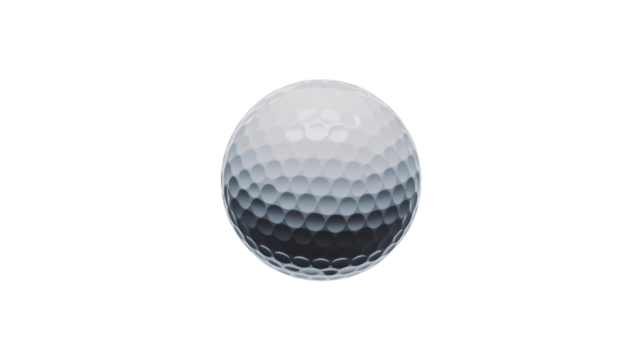 A white, dimpled golf ball, realistically rendered in 3D with detailed shading, presented on a solid transparent background. background removed