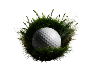 Golf ball bouncing, showing dimpled surface texturing, symbolizing sport, accuracy, and competition success on a transparent background