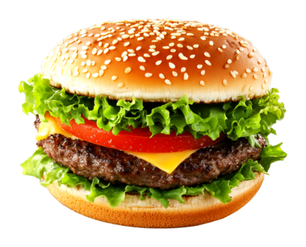 Enjoying a delicious hamburger at a diner tasty food vibrant environment isolated on transparent background