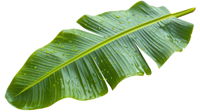 Fresh green banana leaf with water droplets