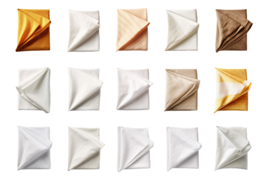 Seven Folded Napkins, Neutral Colors, Isolated on Transparent Background, Fabric Texture, Mockup, Napkin, Textile, Mockup