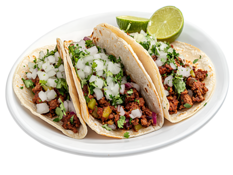 Photo of Manchester style tacos on a white plate against Transparent background PNG