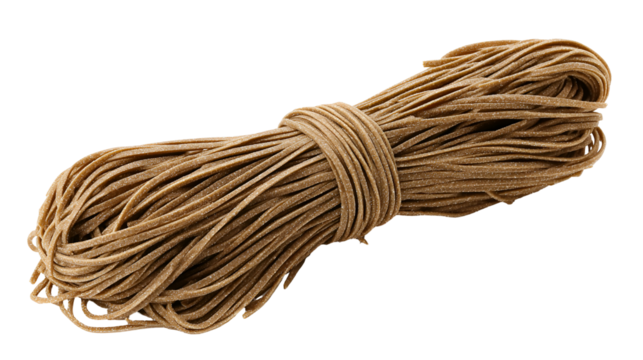 Brown buckwheat noodles tied together on black background