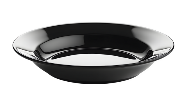Black dinner plate isolated on white background, HD, realistic