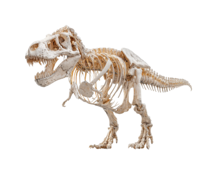 Fossil display of t-rex skeleton natural history museum educational exhibit isolated on transparent background, png