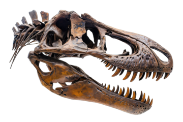Dinosaur head skeleton fossil on transparent background