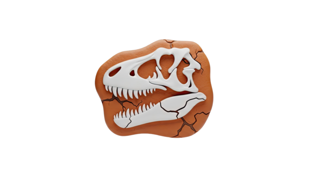 Reconstructing ancient life, fossilized dinosaur skull showcasing prehistoric predator history on transparent background