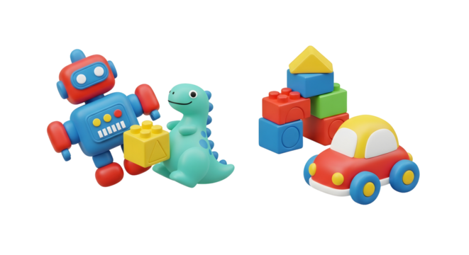 A vibrant, cartoon-style dinosaur character with sharp teeth stands menacingly against a transparent background, showcasing fun and creativity.