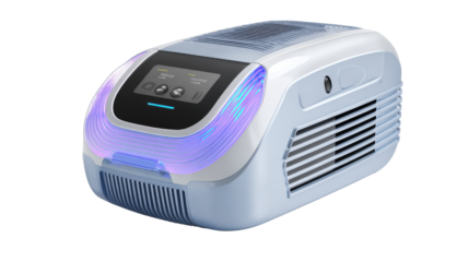 High-tech laser hair removal machine with adjustable settings, isolated on a Transparent background, PNG file.
