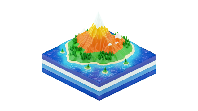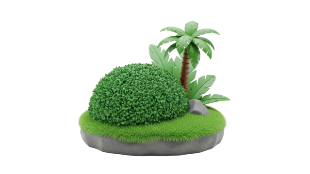 Minimalist 3D Tropical Island Scene with Palm Trees and Rocks