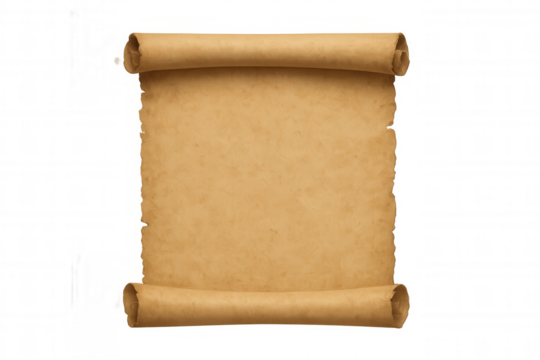 Old parchment scroll with rough edges, ancient paper texture, vintage manuscript, blank document on transparent background