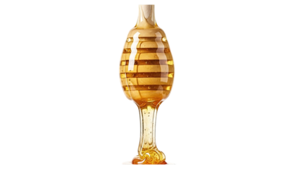 Honey pouring from a honey dipper golden syrup isolated on a transparent background