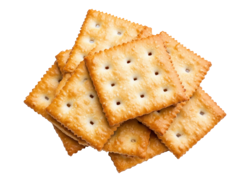Crunchy crackers stacked for snacking and appetizers or parties, cut out