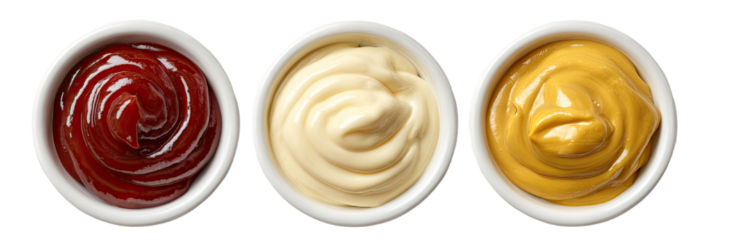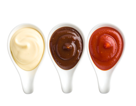tomato ketchup and mustard Elegant Condiment Spoons with Transparent and White Background - Mayo, BBQ, Ketchup Cutout