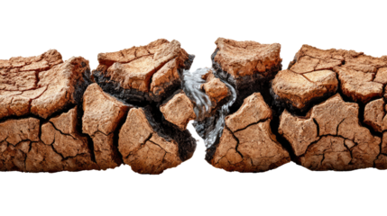 Cracked Earth: A dramatic view of cracked earth with water flowing through it, symbolizing resilience and the power of nature.
