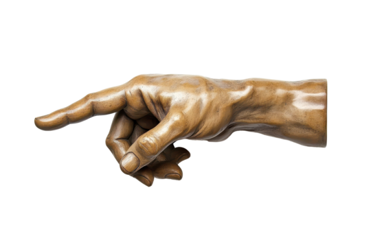 Male hand pointing towards an unseen direction against a clean white background, emphasizing gesture of direction and focus, captured in a dramatic tone