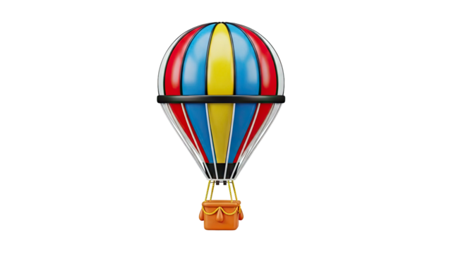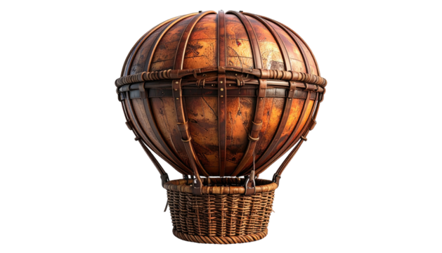 Aged, spherical, balloon with a woven basket beneath, set against a transparent backdrop