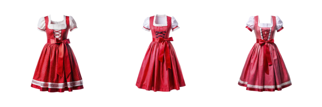 Traditional Bavarian dirndl dress isolated on transparent background, folklore attire