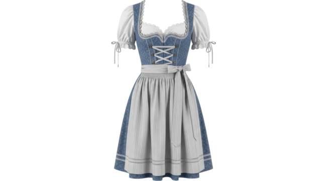German dirndl with apron and lace details background isolated on a Transparent background, PNG file.