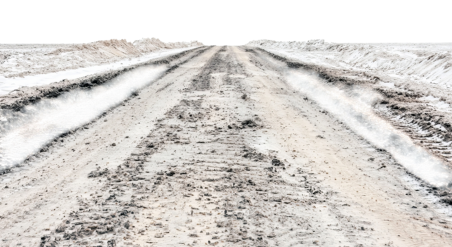 Industrial Dirt Track with Heavy Mining Equipment Isolate on Transparent Background, cutout, png