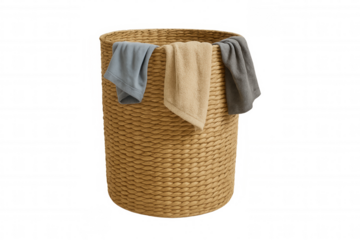 Laundry baskets and hampers for organizing clothes and home organization png isolated on white background