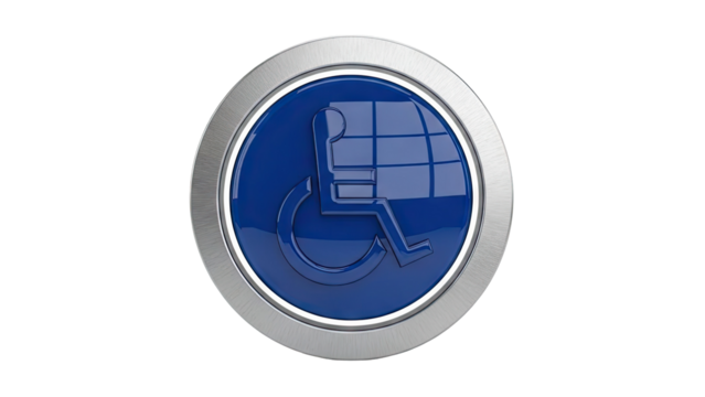 Disabled Access Symbol on Blue Button with Brushed Metal Frame