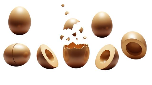 Wooden eggs in various stages of disassembly on black background