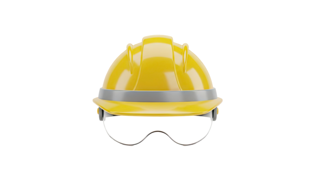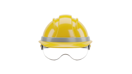 3D Yellow hard hat with clear safety goggles on transparent background