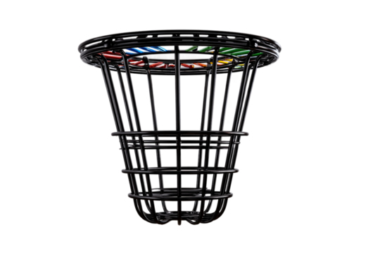 Sports disc golf basket with metal frame isolated on transparent background