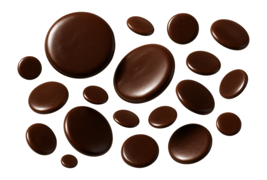 Three piles of jaggery in traditional block cone and disc shapes on transparent background