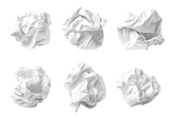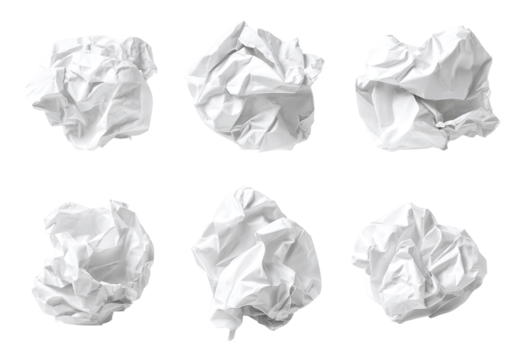 Crumpled white paper on transparent background for pollution concepts