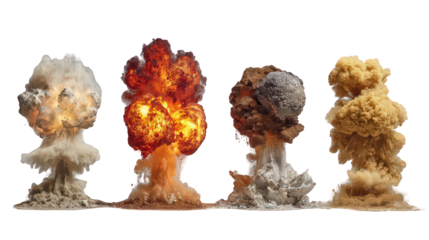 Four Stages Of A Powerful Explosion Sequence With Smoke And Fire